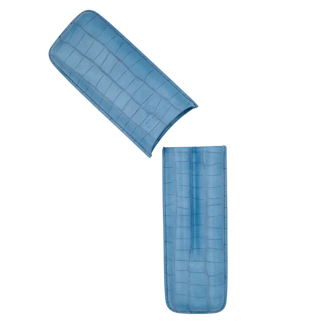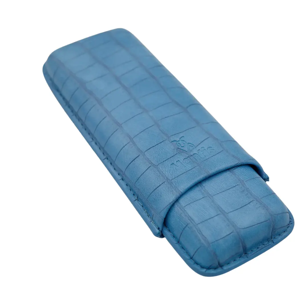 Designed to hold two cigars up to a 56 ring gauge, the Mantis NeoCase Croc Riviera Blue provides compact yet effective storage. The interior is lined with a soft material that helps preserve delicate wrappers, maintaining both the condition and presentation of your cigars. This thoughtful design ensures that each cigar is protected and ready to be enjoyed at its best.